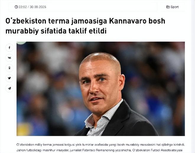 10月2日,权威媒体Sky Sports指出,现年52岁的Cannavaro通常没有机会拥有中国足球队。据报道,卡纳瓦罗已经与乌兹别克斯坦足球协会达成了教练协议。明年,他将带领球队参加世界杯。最近,关于Cannavaro的谣言正在世界各地飞行。 9月29日,许多意大利记者打破了这一消息,称中国足球协会对埃弗格兰德前教练的前教练表示赞赏,并有望重返中国教练。意大利媒体说,中国足球协会将人们派往意大利与Cannavaro交谈。但是,国内媒体否认了谣言,称这应该是Cannavaro团队的偶然炒作。随后,著名的记者R R宣布了Cannavaro的团队确实是“秘密地越过陈·坎格” - 虽然与中国足球协会发生了丑闻,但Cannavaro正式与乌兹别克人进行了对话。足球协会讨论坎纳瓦罗教练的可能性。如今,Sky Sports提出了一份后续报告,该报告称Cannavaro和Uzbekistan足球协会之间的谈判非常顺利,双方达成了协议。接下来,双重便利将签订正式合同,这意味着Cannavaro将于第二天带领球队前往美国,加拿大和墨西哥世界杯,这将是Cannavaro首次担任总教练。乌兹别克斯坦国家队的现任教练是Timur Kapaze。 2022年1月,Kapaze开始担任乌兹别克斯坦U23的总教练。在担任U23的教练三年后,Sikapaze于今年1月被晋升为乌兹别克斯坦国家队的教练。随后,他首次成功带领球队进入世界杯决赛。据报道,乌兹别克斯坦足球协会一直有兴趣租用外国教练来取代卡帕兹,以领导世界上的球队C向上。如今,乌兹别克斯坦足球协会已与Cannavaro达成了教练协议,Capaze代表将尽快删除。同时,以前有一个消息称,中国足球协会推荐了卡帕兹。